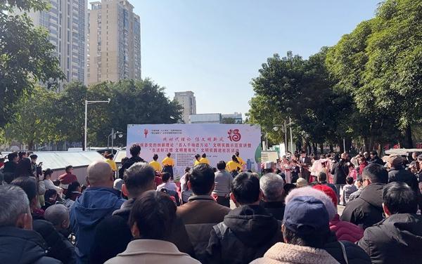 2月8日,一场主题为“践时代理论 倡文明新风”的党的创新理论“百人千场进万站”文明实践示范宣讲活动暨“生活好习惯 文明更有礼”文明实践进社区之移风易俗主题活动,在甘蔗街道街心公园精彩呈现。活动通过群众喜闻乐见的形式,深入宣传党的创新理论,倡导现代文明礼仪,引导市民践行健康生活新风尚。