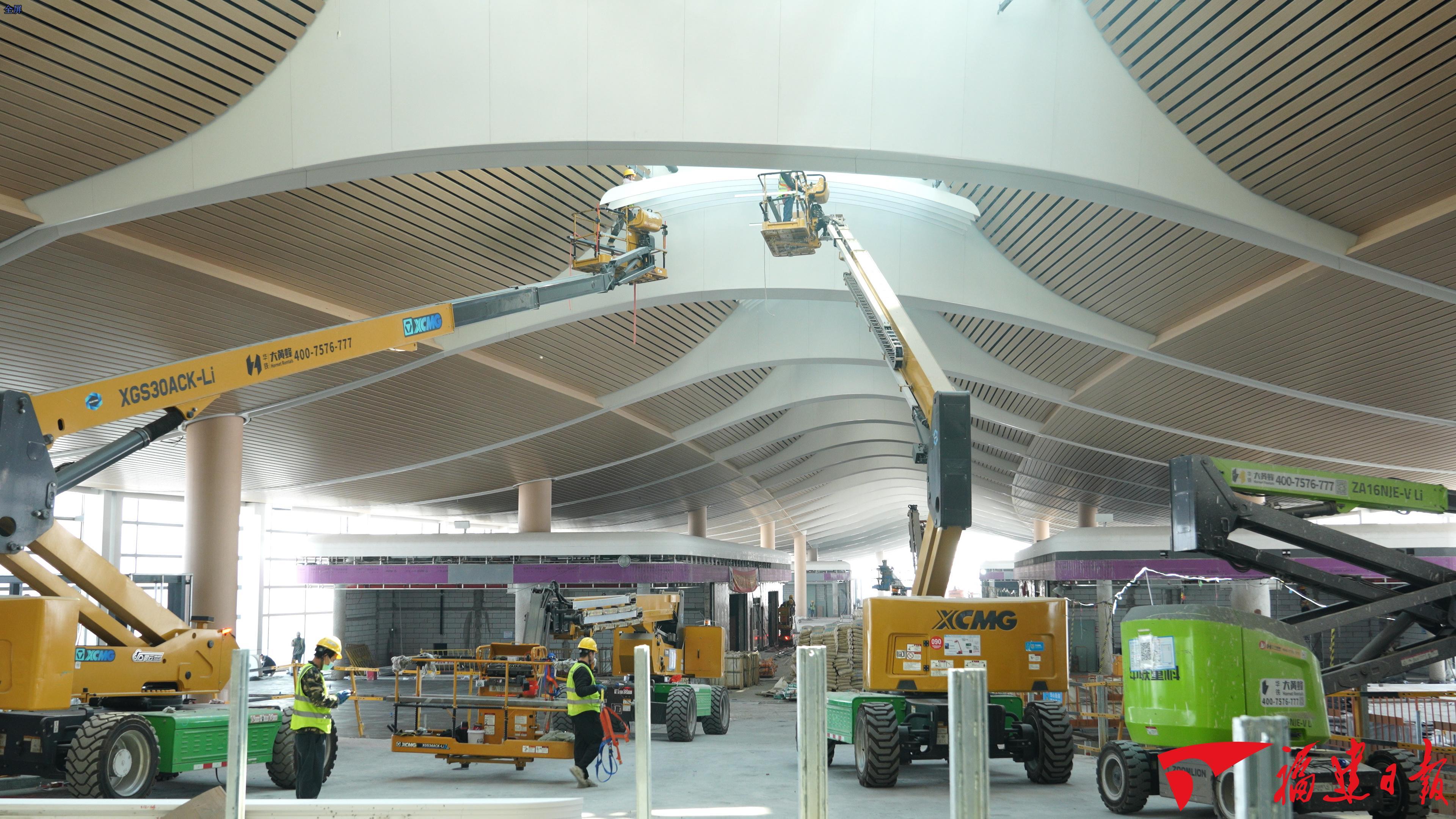 正月初一,福州长乐国际机场二期项目现场,500多名施工人员坚守岗位,朝着今年竣工预验收目标全力冲刺。T2航站楼内,金色的天花板已全部安装到位,机电班组的施工人员正俯身排布管线,卷尺丈量的声响、板材拼接的敲击声交织成曲。