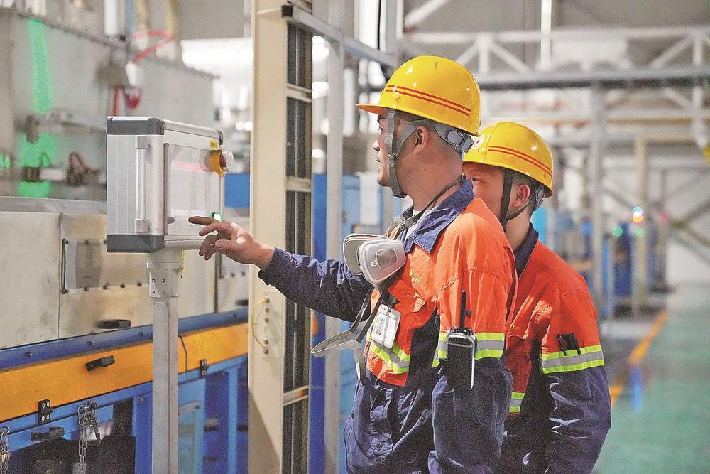 春节期间,福建紫金锂元材料科技有限公司的生产车间内,坚守岗位的工人正在检查仪器数据。 福建日报见习记者 李娟 通讯员 林斯乾 摄