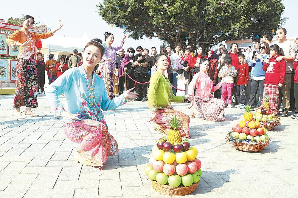 2月19日,“世遗桥畔·烟火洛江”2026桥南古街新春文旅嘉年华在泉州洛阳桥畔举行。身穿印尼服饰的舞者起舞,将现场气氛点燃。赖淑玲 摄