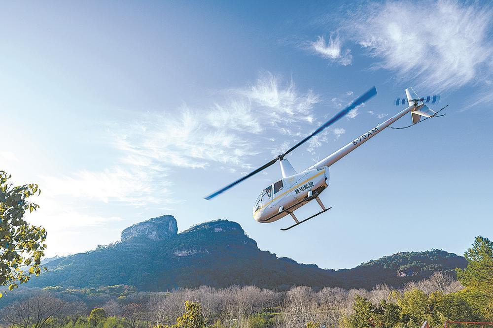 2月20日,武夷山市直升机低空游览项目人气旺盛。该项目于2026年春节期间正式运营,在大王峰下为游客提供空中观景服务。陈天博 摄