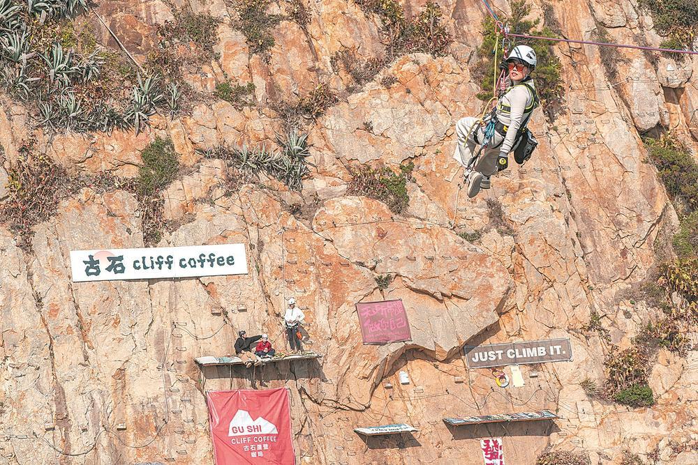 2月18日,连江黄岐半岛的古石村,许多自驾前来的游客在此体验独特的山海之美,并参与攀岩喝咖啡及海上滑索等户外运动,感受不一样的假期休闲游。王毅 摄