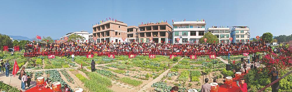 2月19日,漳州市龙海区程溪镇东马村1400多名村民欢聚一堂拍摄“全村福”。今年是东马村因存在地质灾害隐患,整村从海拔900米的大山上搬迁至镇区附近20周年,村民们与回乡休假的军人、学子和在外工作的乡亲同框,见证东马整村搬迁20载的蝶变,留住团圆的美好记忆。陈建和 摄