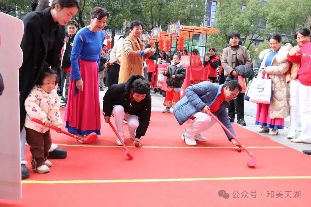 福鼎市天湖社区“近邻集市”上,居民在体验传统民俗游戏中传递新春祝福。