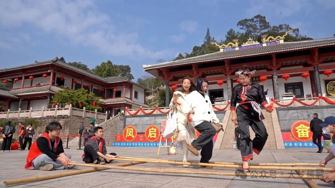 新春民俗竞技嘉年华将活动氛围推向高潮。竹竿舞、龙接凤(双人抛绣球接福)、投壶等特色民俗项目趣味十足,游客们踊跃参与挑战,集齐3枚挑战纪念章即可兑换美食兑换券,在运动中体验浓郁的民族风情。