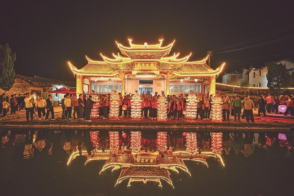 如果说拔龙展现的是力量与豪情,那么芷溪花灯则呈现出精巧与诗意。正月初四,芷溪古村花灯民俗文化节启幕,93盏花灯创下近年来之最。竹篾为骨、薄纸为面,每盏花灯内藏99盏明火,点亮后通透澄澈,被誉为“纸包火”的奇迹。花灯巡游队伍在阡陌间缓缓前行,古村在光影中如梦如幻,映照出客家人对团圆与祥和的期盼。