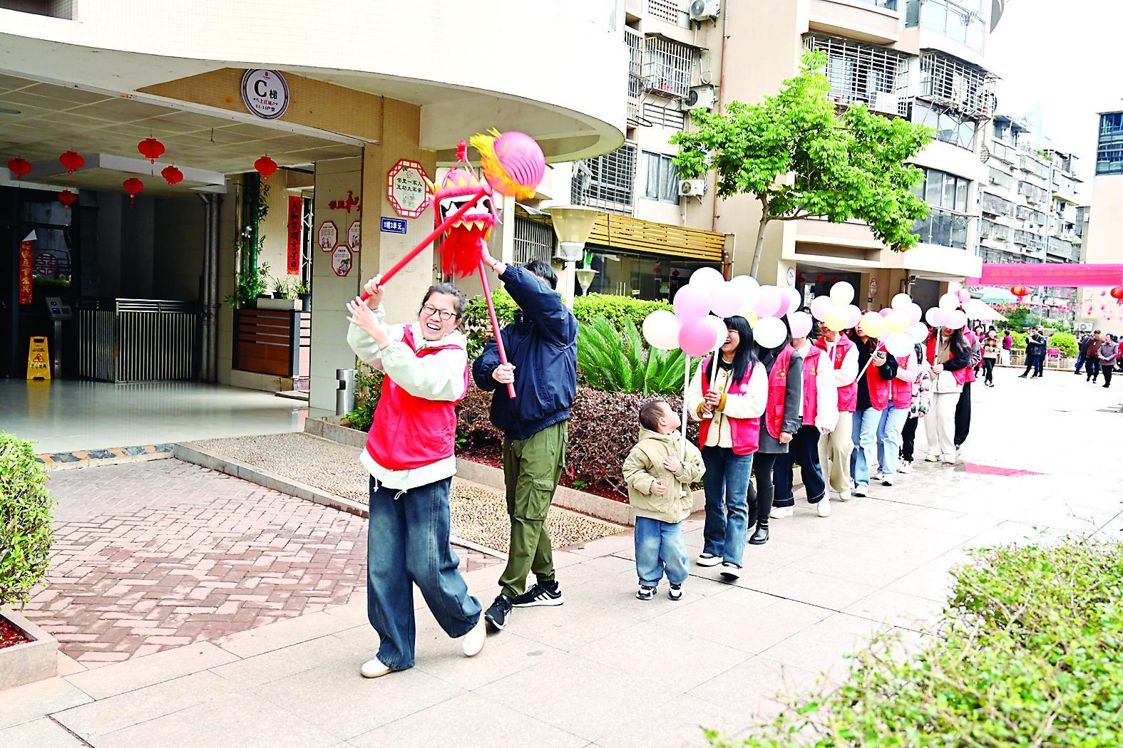 2月28日,延平区四鹤街道新时代文明实践所与新建、官沙田社区新时代文明实践站联合共建单位举办“马跃春潮・福满万家”喜乐闹元宵主题活动,设置了做花灯、煮汤圆、猜灯谜、“舞龙”等活动,吸引了周边居民参与,营造了和谐、祥和、喜庆的节日氛围。 (洪志明 摄)