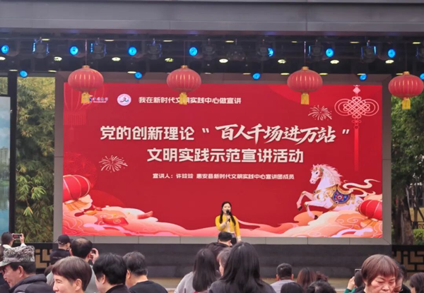 活动现场还特别安排了党的创新理论“百人千场进万站”文明实践示范宣讲。让党的创新理论随新春祝福走进千家万户,为年味添上浓厚的理论氛围与文明底色。
