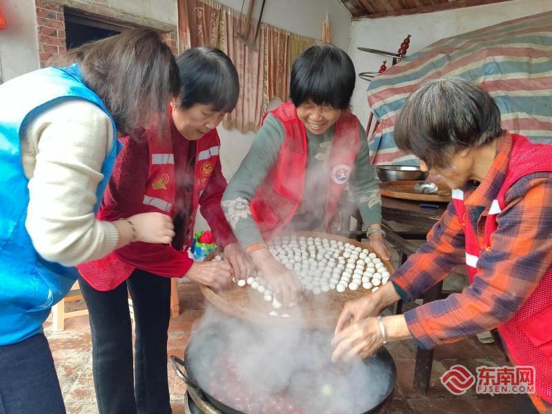 元宵节的味道是甜的,也是暖的。坑内村新时代文明实践站里,“美厨娘”志愿服务队一早就开始忙活:备料、揉面、搓圆,甜馅咸馅各包一种。汤圆下锅,白胖的身子浮出水面,阿公阿嬷围坐一堂,咬一口软糯,唠几句家常,古厝里热气腾腾。