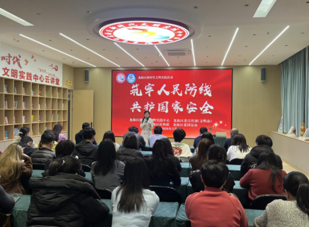 文明风3月4日讯 3月4日,龙海区新时代文明实践中心、龙海区委宣传部(文明办)、龙海区社科联、龙海区委国安办联合举办“筑牢人民防线 共护国家安全”主题宣传教育活动。活动通过专题讲座与现场观展相结合的形式,有效推动国家安全教育走进基层、贴近群众,取得良好成效。