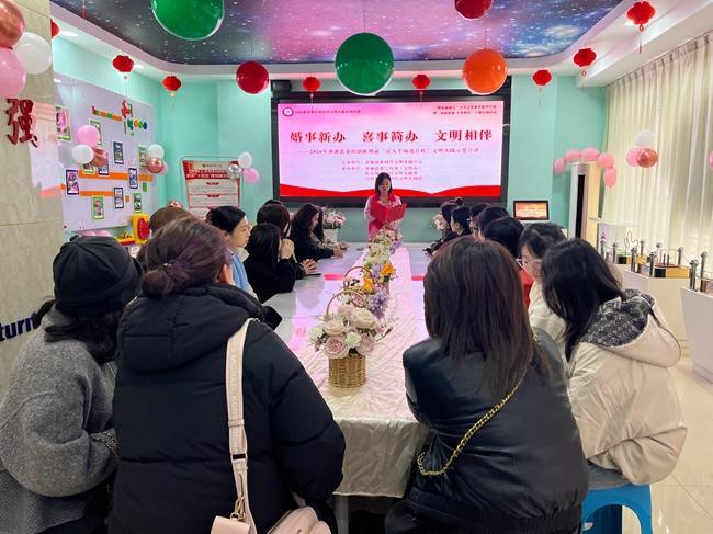 宣讲员现场宣讲移风易俗知识,传递文明婚嫁新风理念。