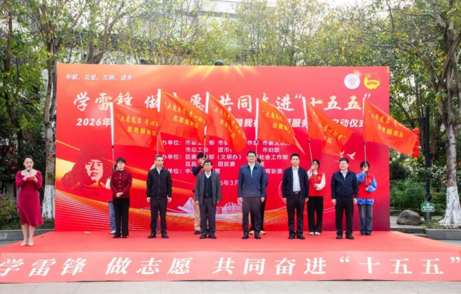 3月5日,由龙岩市委宣传部、市委社会工作部、市委文明办、市总工会、团市委、市妇联6部门联合主办的2026年“大爱龙岩”学雷锋・文明实践我行动志愿服务活动,在中心城区街心广场启动。