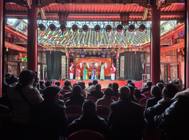 文明风3月11日讯 近日,柘荣县城郊乡前山村黄氏宗祠内丝竹悠扬、锣鼓铿锵,一场以“孝德传家・福满柘荣”为主题的戏曲进宗祠展演活动精彩开演,经典越剧轮番登台,为当地群众带来了一场沉浸式的文化盛宴。