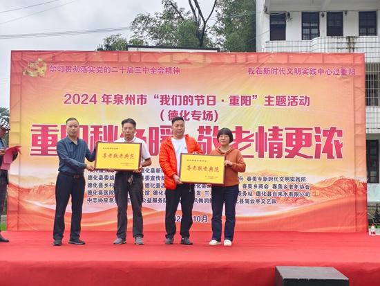 为获评“孝老敬亲典范”的村民颁发牌匾。春美村 供图