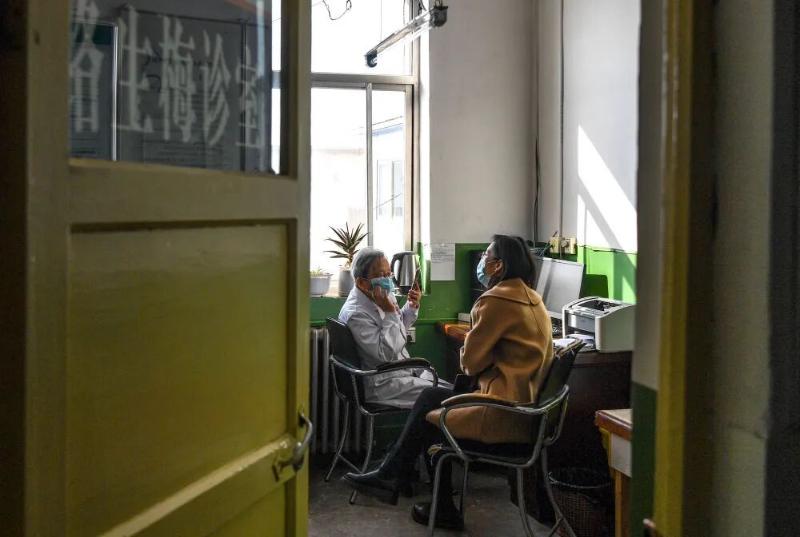 路生梅在佳县人民医院坐诊。新华社记者 邹竞一 摄