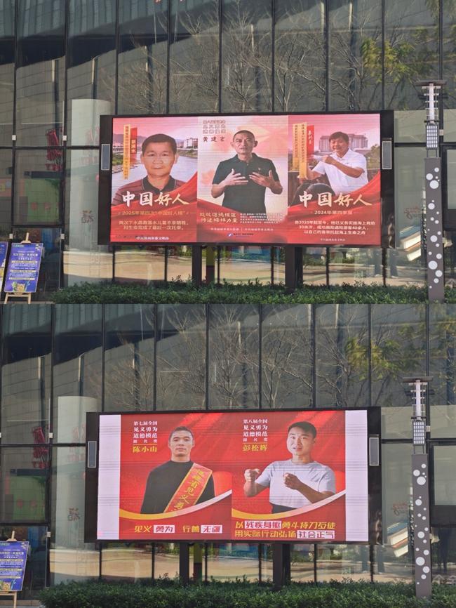 走进漳州的社区、学校、政务大厅,随处可见见义勇为道德典范的宣传海报。这是漳州市委文明办依托“万屏联动”社会宣传机制,充分利用户外大屏、楼宇电视、宣传栏等载体,将榜样力量渗透进市民的日常生活。