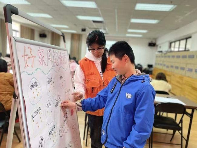 “好家风能量站”特色互动区,展示着“拥抱”“阅读”“说谢谢”等美好习惯的词汇,志愿者引导大家通过喜好选择贴纸的方式趣味签到,将抽象的家风内涵转化为可触摸的行动标签,为活动铺垫了认知基础。随后进入分享环节,亲子家庭踊跃讲述自家的好家风小故事,让优良风气在互动中自然传递与共鸣。