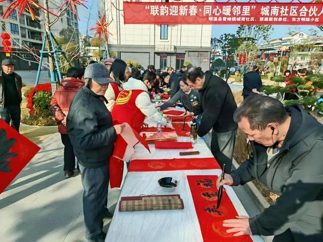 春节期间,三明市明溪县雪峰镇城南社区“联韵迎新春 同心暖邻里”文明实践活动受到居民欢迎,社区合伙人与星级业委会成员身着“志愿红”,将红彤彤的福字、喜庆春联与健康文明手册送到居民手中。