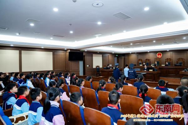 3月19日上午,2026年厦门·海沧法治文明“益起行”宣传活动暨“文明实践在身边——青少年模拟法庭”活动,在海沧区人民法院涉台法庭成功举办。厦门外国语学校海沧附属学校的50名学子沉浸式参与庭审模拟,在实践中感悟法律威严、学习法律知识,播下法治文明的种子。