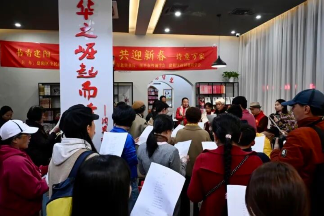 今年正月十五,第十届“元宵诗会”如期而至。银发老人、文艺青年、中小学生,大家相聚在潭阳书舍·建阳一中校友公益书吧里,享受着这个诗意的夜晚。在这里,语言的边界,无法限制人们无穷的想象,活动现场,没有预先编排的节目单,没有严苛的筛选标准,更没有什么“专业”与“业余”的界限。大家不论年龄,不论职业,只要心存些许诗意,想要分享给大家,便可以大方地走到台前,或朗读、或吟诵、或演绎。