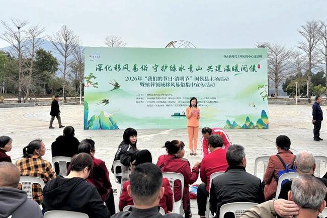 3月26日,2026年“我们的节日•清明”闽侯县主场活动暨殡葬领域移风易俗集中宣传活动在白沙镇市民广场举行。活动以文艺展演与政策宣讲相结合的形式,引导市民摒弃陈规陋习,树立文明、绿色、安全的祭扫理念。