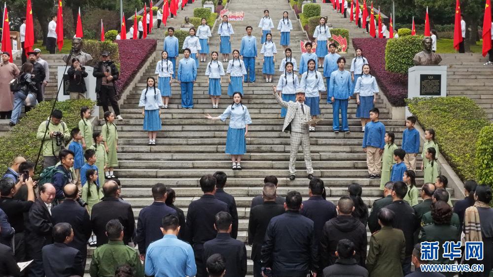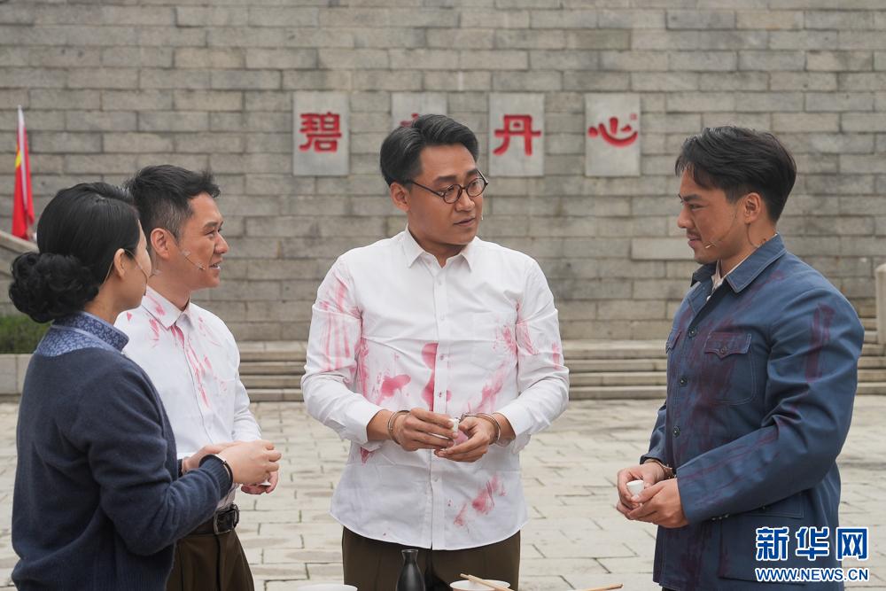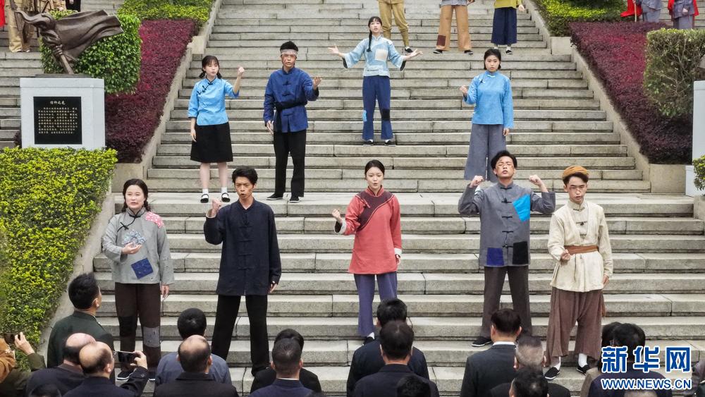 3月29日,演员在“铁血铸魂”篇章中演唱红色主题歌曲(无人机照片)。新华网 肖和勇 摄