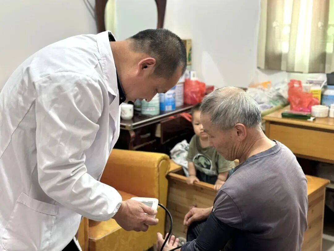 1987年,叶永红考取乡村医生证书,回到村里开起诊所,他的口袋里总装着诊疗本,无论是深夜还是暴雨天,只要乡亲们有需要,他随叫随到。白天,他在村卫生所为患者诊疗,夜晚,他主动上门服务有慢性病的村民。从随时诊治、解决村民头疼脑热,到长期看护、成功让多位老人从全失能逐步恢复到半失能,叶永红的行医脚步走遍了高沙村每家每户。