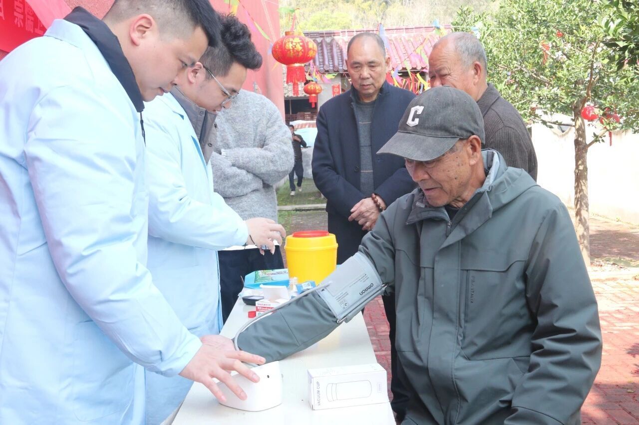 随后,崇儒卫生院医务人员为村民免费测量血压、血糖,耐心解答健康咨询,针对常见病、多发病进行预防知识科普,将健康关怀送到群众家门口。