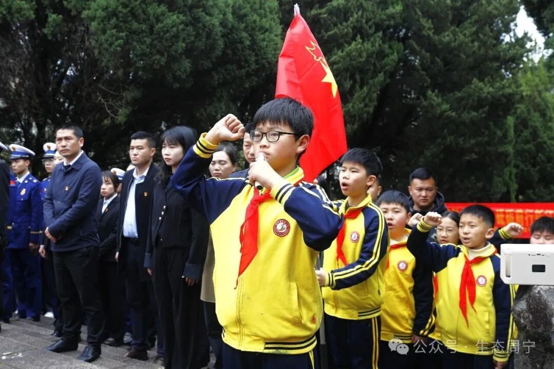 现场,参与人员整齐列队、神情肃穆,肃立在烈士纪念碑前,齐声高唱国歌后集体默哀,向革命先烈致以沉痛悼念。默哀结束,少先队员代表、团员代表、党员代表依次上前,带领大家重温誓词,誓言铮铮、响彻陵园,诉说着传承英烈精神、勇担时代使命的坚定决心。