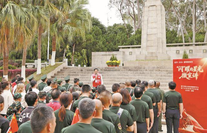 这是厦门市烈士纪念设施保护中心组织的“‘闪’耀的星光”微宣讲活动。现场,数位烈属深情讲述先烈们的事迹。与此同时,鹭岛老兵学雷锋志愿服务队队员、华侨大学学生代表和自发前来的市民等,手持菊花,深深鞠躬,向长眠于此的英烈们致以最深的敬意。