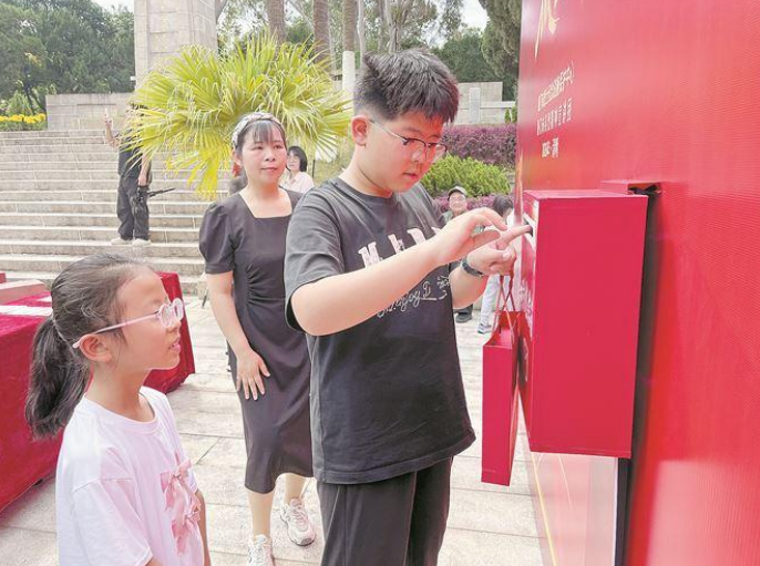 烈属将信件投入“时光信箱”。(记者 罗子泓 摄)