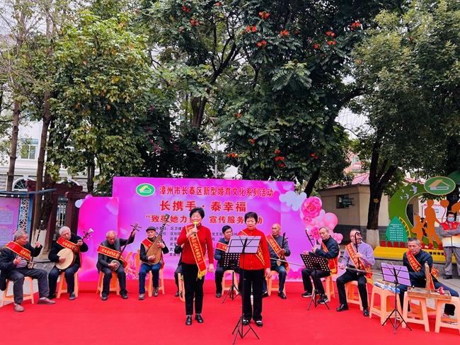 这是一支平均年龄超过70岁的宣讲队伍,他们巧妙地将闽南语快板、芗剧与婚育新风宣传有机结合,以群众喜闻乐见的方式传递文明婚育理念。每逢元宵、端午、中秋等传统节日,社区都会在爱情公园举办“其乐融融庆元宵,温暖和谐一家亲”趣味游园、“我们的节日”春节义写对联等活动,宣讲队就趁着人最齐的时候登场。