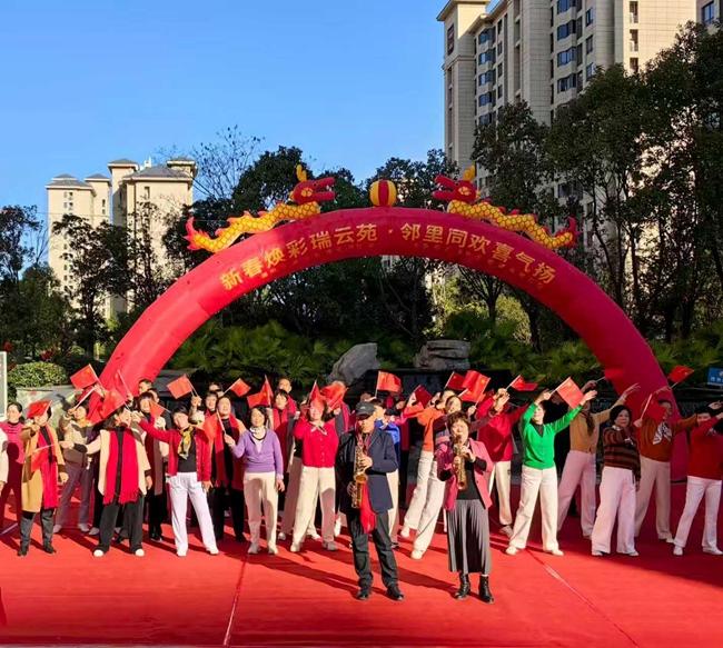 2026年2月8日,崇阳街道云谷社区党委联合汇禾物业、小区业委会在瑞云苑广场举办邻里迎新春联欢活动。张晓婷 摄