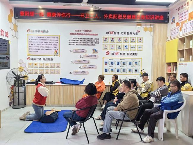 童游街道同文社区在暖蜂驿站开展健康急救知识讲座。马莉 摄