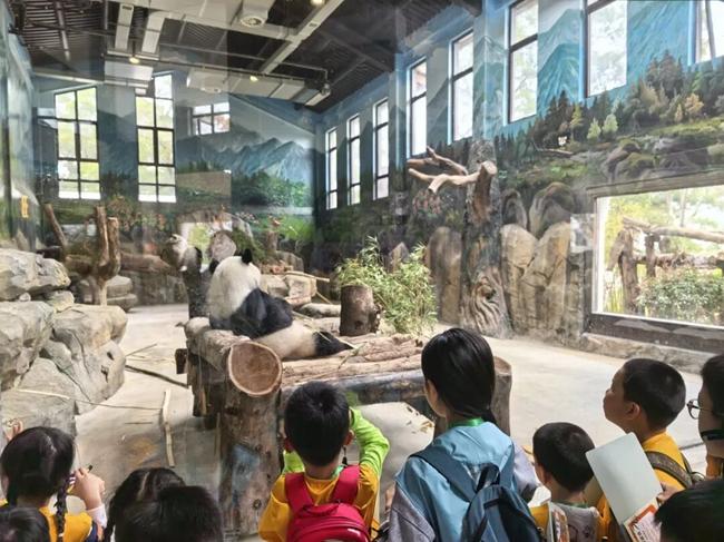 在轻松欢快的氛围中,研学活动正式拉开帷幕。在大熊猫展区,孩子们近距离观察国宝大熊猫的生活习性,围观大熊猫进食,直观了解其饮食特点与生存环境。生动的实景讲解让大家对这一珍稀动物有了更深刻的认识。
