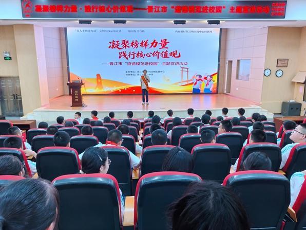 本次活动由晋江市新时代文明实践中心主办,晋江市第一中学协办。通过举办道德模范进校园宣讲活动,宣扬道德典型的先进事迹和崇高精神,倡导广大师生进一步培育和践行社会主义核心价值观,传递榜样力量,引领广大青年学子从道德模范故事中汲取力量、产生共鸣、收获成长,激励青年学子做伟大事业的建设者、文明风尚的倡导者、敢于追梦的奋斗者,在全社会营造学习、关爱、崇尚、争做先进典型的浓厚氛围。(晋江市委文明办 张燕妮)