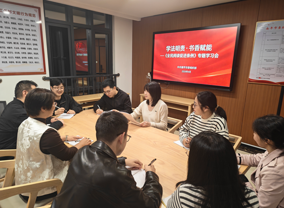 专题学法明责,制度筑基强本。专题学习会上,年轻干部逐章逐条研读《条例》,围绕出台背景、核心条款与实践意义开展研讨交流。大家一致认为,全民阅读是提升国民素养、筑牢文化自信的重要基石,更是建设学习型社会的关键支撑。组工干部作为新时代党的建设的推动者和实践者,理应在全民阅读中走在前、作表率,自觉把阅读作为一种政治责任、生活方式与精神追求,推动《条例》精神在机关落地生根、见行见效。