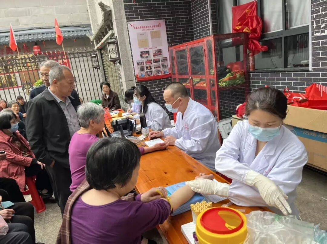 宅里村幸福院内同样人头攒动、暖意融融。来自赛岐卫生院的医护团队早早就位,为村民们提供免费血压血糖检测、血常规筛查、健康咨询、用药指导等一站式服务。医护人员耐心细致地为每一位村民问诊查体,详细询问身体状况,针对检查中发现的问题给出个性化诊疗建议,同时普及健康生活方式,引导村民树立 “早预防、早发现、早治疗” 的健康理念。