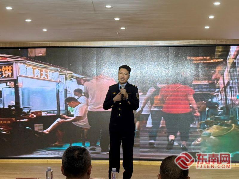 随后,“理响莆阳·荔体声”宣讲员、荔城区市场监督管理局干部王胧僖以《守护烟火气,做“有味有为”的市场监管人》为题,分享了自己从憧憬“行侠仗义”到甘于奔走菜市场、后厨检查的成长心路。“食品安全无小事,差一度都不行!”他以福建省人民满意的公务员倪梅娟的先进事迹和自身执法经历,道出市场监管人的政绩观——“藏在食品公示牌里、检测报告里、日复一日的执着里”。