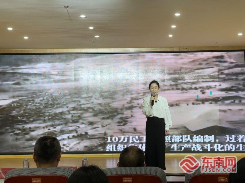 活动还播放了短视频《莆田百姓心中的“草鞋县长”》,再现了原莆田县长原鲁山“戴草帽、穿草鞋、骑单车”深入一线、一生为民的感人事迹。市“理响莆阳”宣讲队生态小分队成员、东圳水库管理局职工林琼以《传承东圳品格 践行正确政绩观》为题,讲述了东圳水库建设时期“团结协作、艰苦奋斗、无私奉献”的品格,以及“没有一次请客送礼、没有一处挥霍浪费”的“四无”廉洁工程奇迹。“原鲁山同志去世仅留下92元存款,他用一生回答了‘政绩为谁而树’——为民造福才是最大政绩。”林琼的话语引发强烈共鸣。