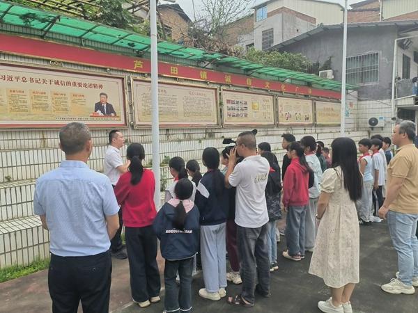 走进芦田镇诚信文化广场,学生们认真聆听古代诚信故事,详细了解近年来芦田镇诚信人物、企业、商户、家庭的事迹,直观感受诚信的力量。