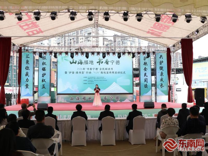 4月24日下午,2026年“书香宁德”全民阅读月暨“护苗·绿书签”行动、“4·26”版权宣传周启动仪式,在蕉城夜市启幕。本次活动以“山海福地 书香宁德”为主题,旨在以书香为媒,联动全城掀起全民阅读、绿色护苗、版权保护的新风尚,让文化之韵浸润山海之城。