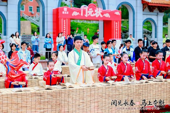 4月25日上午,永春县2026年全民阅读周暨版权保护宣传周在魁星书院启幕。《桃源花开》《风物永春》等本土原创书籍正式发布,前者以五里古街为锚点记录侨乡变迁,后者以七个篇章勾勒永春的历史脉络与时代巨变,让阅读与地方文化认同深度绑定。与此同时,千年晒书礼在书院广场重现,青少年行沃盥礼,体验振拂尘蠹、展页迎晷等传统礼仪,当全体面向典籍行三揖礼,齐呼“晒书啦”,千年文脉在这一声中薪火相传。当日下午,“魁星少年说”阅读活动接力启动,每月定期举办,首场石鼓中心小学专场通过文艺汇演与阅读互动,营造“人人皆读、处处可读”的社会氛围。4月26日,央视《新闻直播间》将镜头对准这片千年书香之地,将书香传递到了更远的地方。