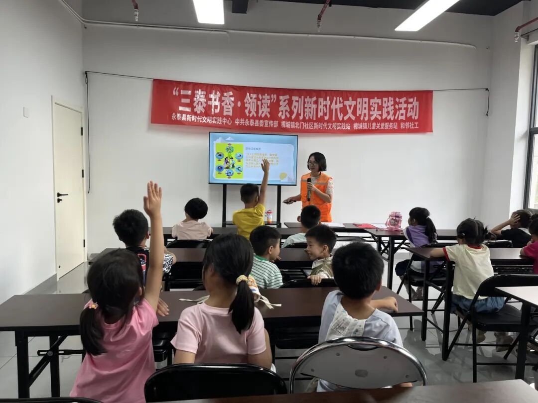 新时代文明实践中心“三泰书香·领读”系列新时代文明实践活动 “学习习近平总书记关于未成年人思想道德建设的重要指示,我深感使命在肩、责无旁贷。未成年人是祖国的希望,抓好思想道德建设是基层的重要使命。”永泰县樟城镇北门社区新时代文明实践站站长雷惠晖表示,“身为新时代文明实践站站长,我将立足社区实际,联动学校、家庭,开展红色宣讲、经典诵读、小小志愿者等活动,引导孩子们树立正确三观。用心用情呵护幼苗成长,助力未成年人扣好人生第一粒扣子,为培育时代新人贡献基层力量。”