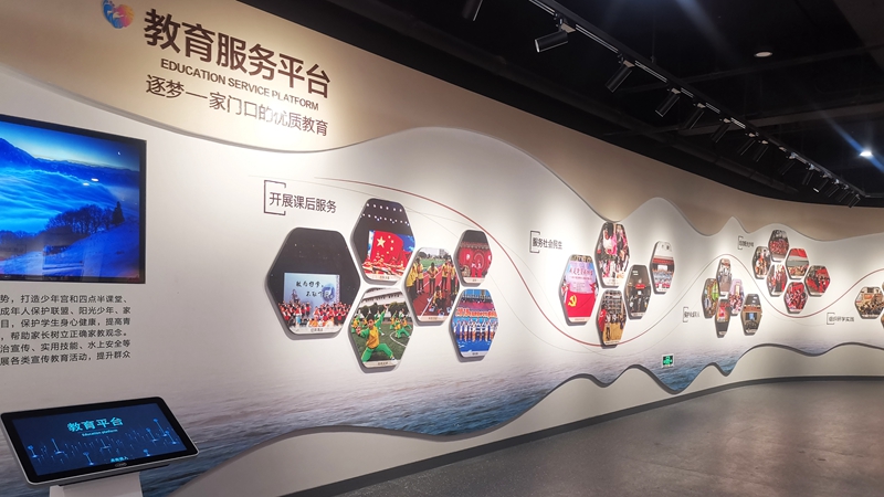 教育服务平台通过“开展课后服务、组织研学实践、未成年人保护、培育阳光少年”等主题活动,打通服务群众、服务青少年的“最后一公里”。设置触控屏呈现优质的教育资源、特色的教育服务及活动,方便群众点播。