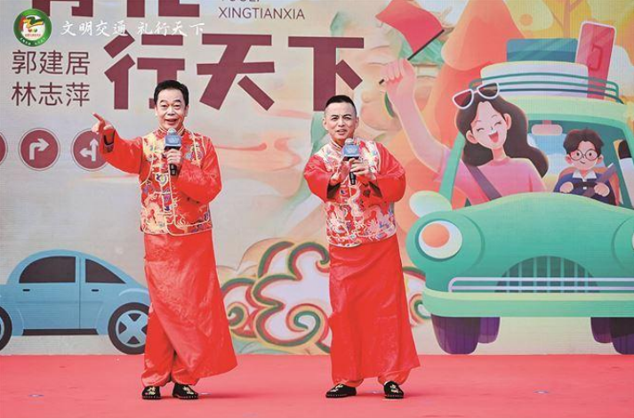答嘴鼓表演以诙谐幽默的方式宣传交通安全。图/厦门市公安局交警支队 提供