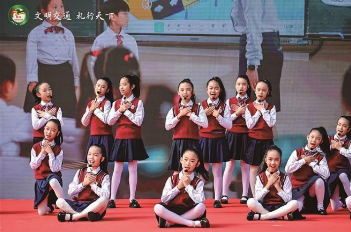 孩子们清澈的歌声,传达出“交通安全从娃娃抓起”的重要性。图/厦门市公安局交警支队 提供