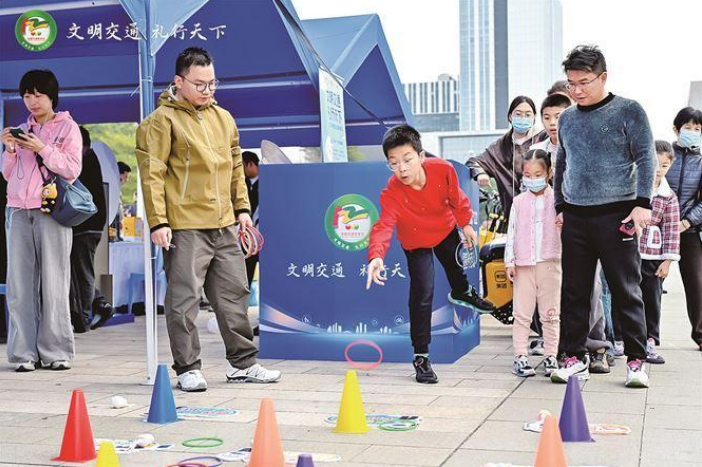 建行、招行、滴滴、货拉拉、美团、太保等参与单位充分发挥自身优势,通过有奖问答、案例讲解等形式,向市民普及交通安全知识,进一步扩大宣传覆盖面和影响力。“醉驾体验”“疯狂套圈”“不闯红灯大转盘”等趣味游戏,吸引了大人小孩纷纷驻足,在游戏中认识交通标志、学习避险技巧,潜移默化中提升交通安全意识。市民王先生带着孩子玩得不亦乐乎:“这种方式太好了,孩子在玩的时候就记住了不能闯红灯、要走斑马线,比单纯说教管用。”