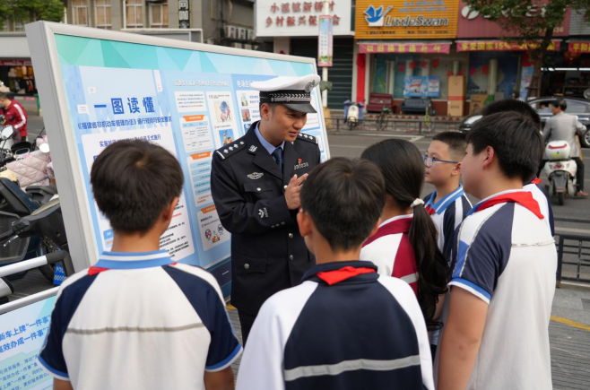 活动现场设立宣传咨询台,工作人员结合宣传展板、普法画册、警示案例视频等多样化载体,向群众深入解读《福建省非机动车管理办法》,剖析典型交通事故案例,普及日常安全出行常识,增强公众法治意识和自我保护能力。
