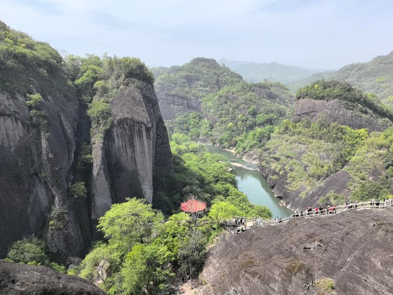 天游峰是武夷山国家公园内必打卡的景点之一。登山步道有800多级台阶,随着海拔升高,风景越来越美。沿途可以欣赏到清澈的涧水飞流而下,远处的青山在雾气中若隐若现。